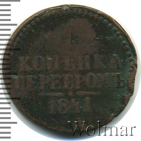 Аверс монеты 1 копейка 1841 года ЕМ