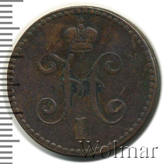 В центре вензель Николая I. Над ним Корона Российской империи. По окружности канта имеются рельефные элементы, выполненные в виде точек.