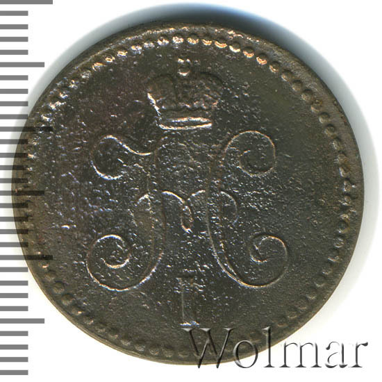 В центре вензель Николая I. Над ним Корона Российской империи. По окружности канта имеются рельефные элементы, выполненные в виде точек.