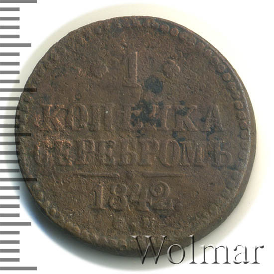 Цена на монету 1 копейка 1842 года СМ на сегодня, 8 марта 2026 года