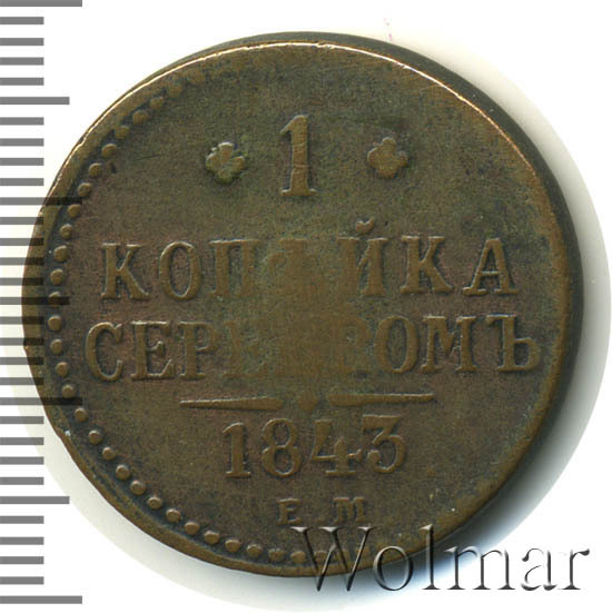 Цена на монету 1 копейка 1843 года ЕМ на сегодня, 28 января 2026 года