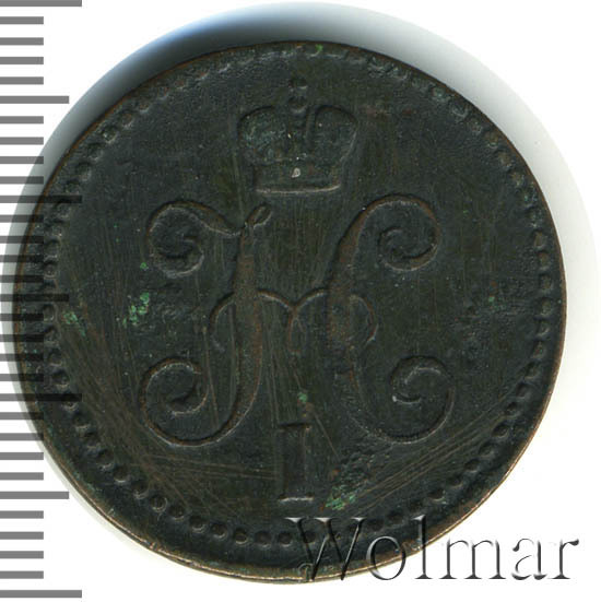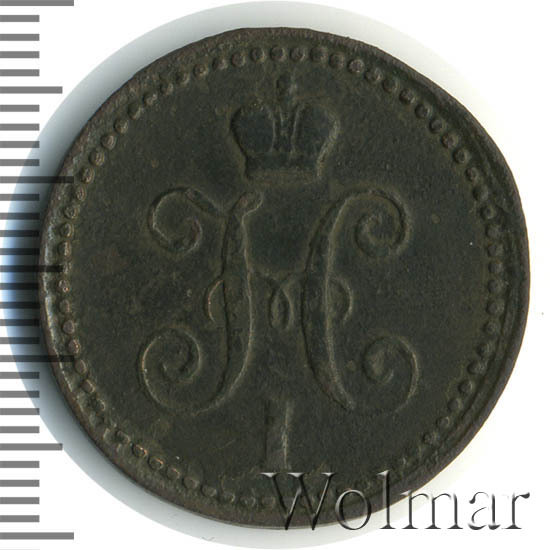 В центре вензель Николая I. Над ним Корона Российской империи. По окружности канта имеются рельефные элементы, выполненные в виде точек.