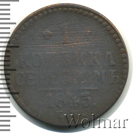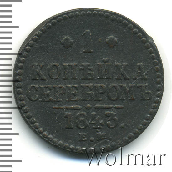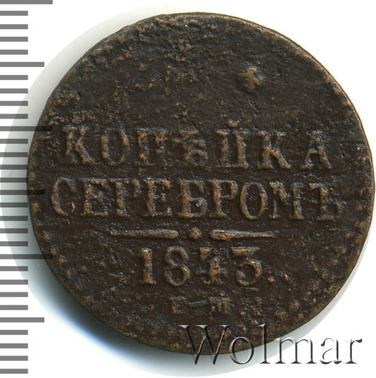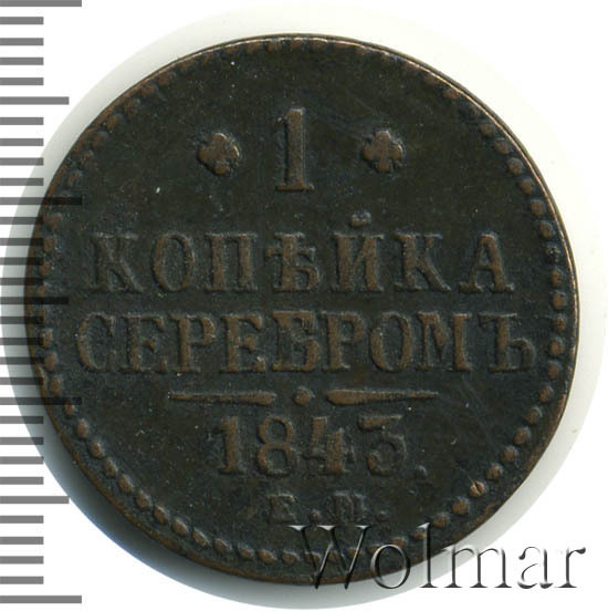 Цена на монету 1 копейка 1843 года ЕМ на сегодня, 16 марта 2026 года
