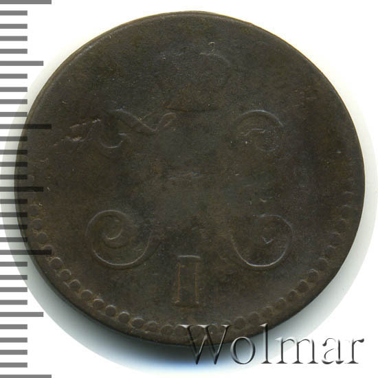В центре вензель Николая I. Над ним Корона Российской империи. По окружности канта имеются рельефные элементы, выполненные в виде точек.