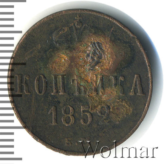 Цена на монету 1 копейка 1852 года ЕМ на сегодня, 24 октября 2025 года