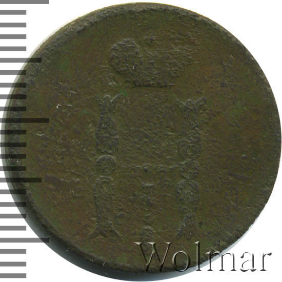 Реверс монеты 1 копейка 1852 года ЕМ