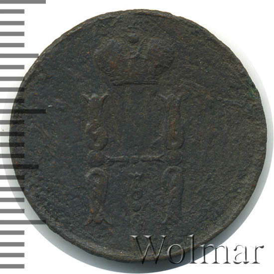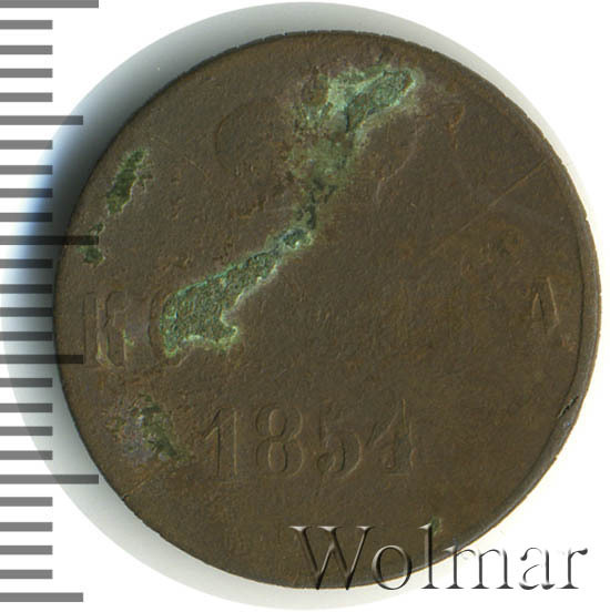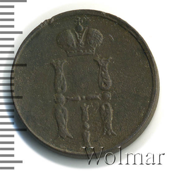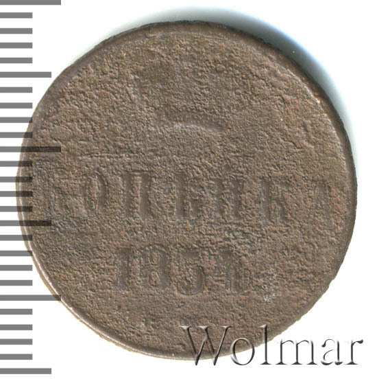 Реверс монеты 1 копейка 1854 года ЕМ Николай I