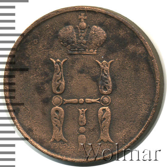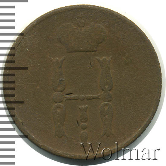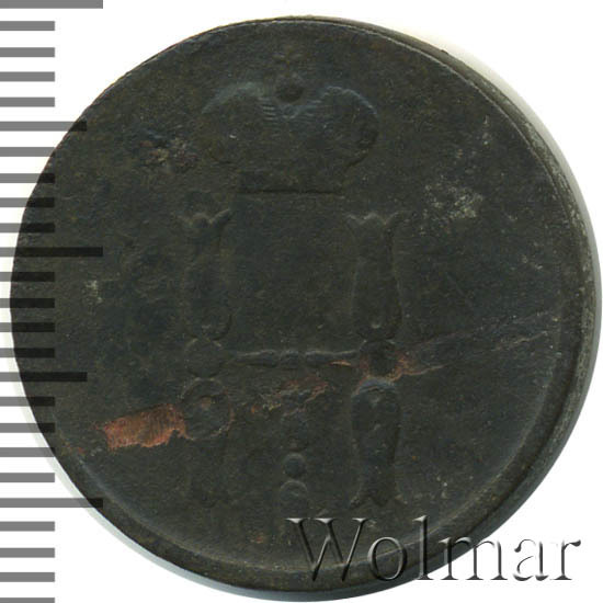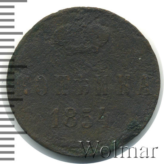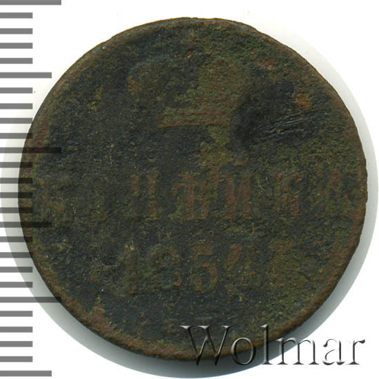 Аверс монеты 1 копейка 1854 года ЕМ Николай I