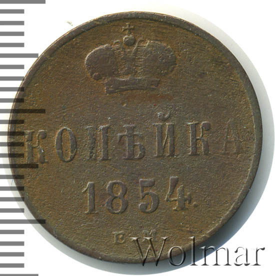 Цена на монету 1 копейка 1854 года ЕМ Николай I на сегодня, 10 марта 2026 года