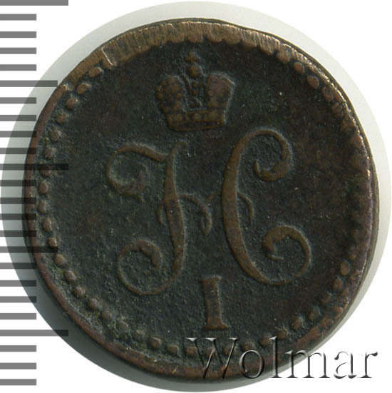В центре вензель Николая I. Над ним Корона Российской империи. По окружности канта имеются рельефные элементы, выполненные в виде точек.