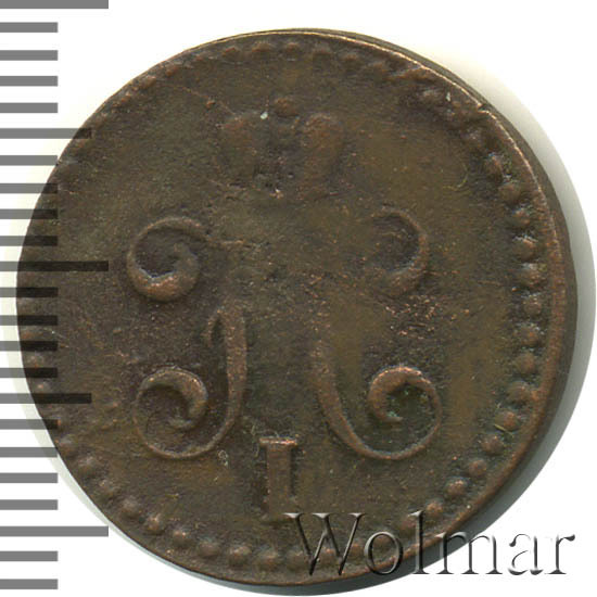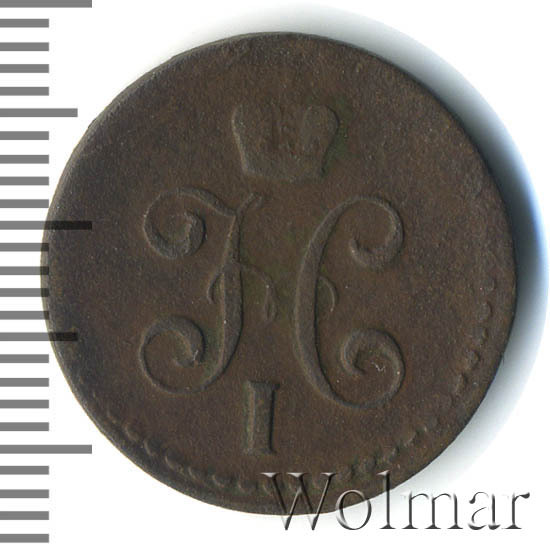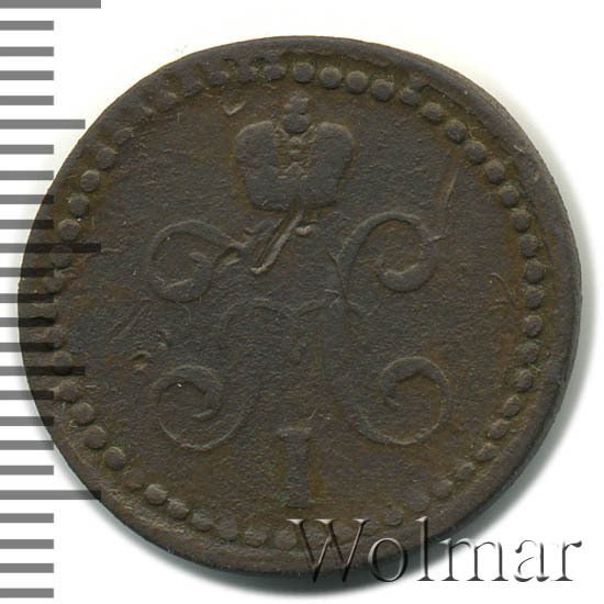 В центре вензель Николая I. Над ним Корона Российской империи. По окружности канта имеются рельефные элементы, выполненные в виде точек.