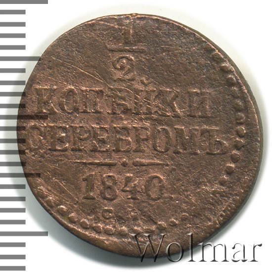 '1/2 копейки 1840 СПМ буква перевёрнута'