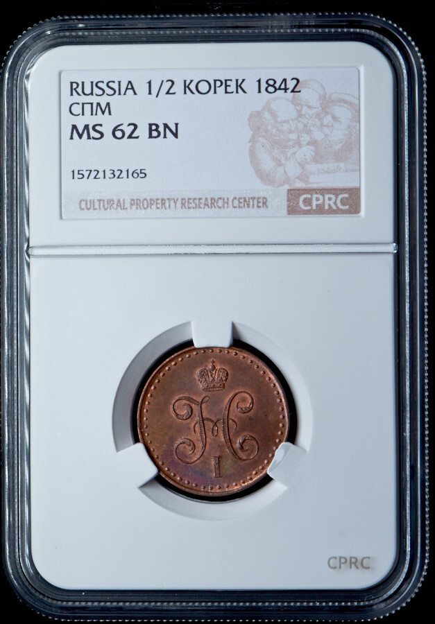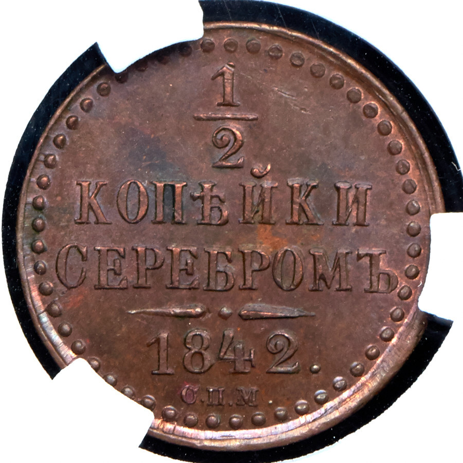 1/2 копейки 1842 (в слабе)буквы СМ Аукцион: AdaCoins Online Состояние: MS 62 BN | 07.08.2025 |