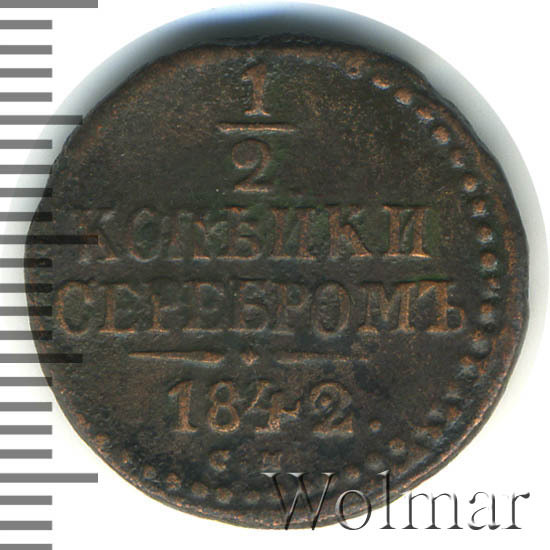 Цена на монету 1/2 копейки 1842 года СМ на сегодня, 27 октября 2025 года