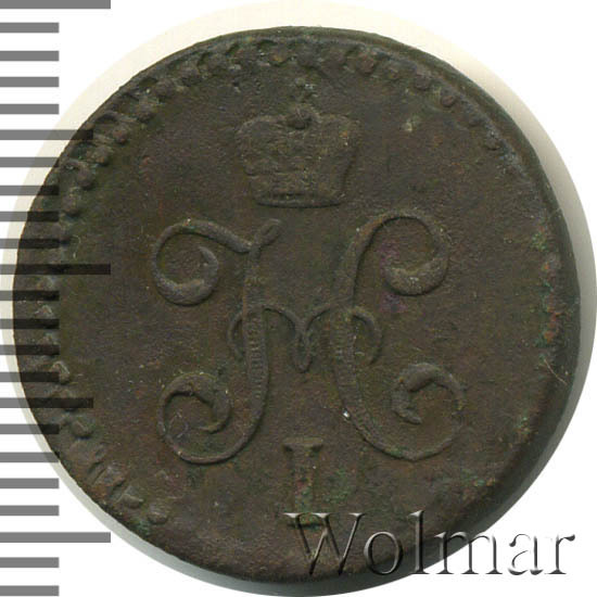 В центре вензель Николая I. Над ним Корона Российской империи. По окружности канта имеются рельефные элементы, выполненные в виде точек.