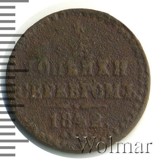 Реверс монеты 1/2 копейки 1842 года СПМ