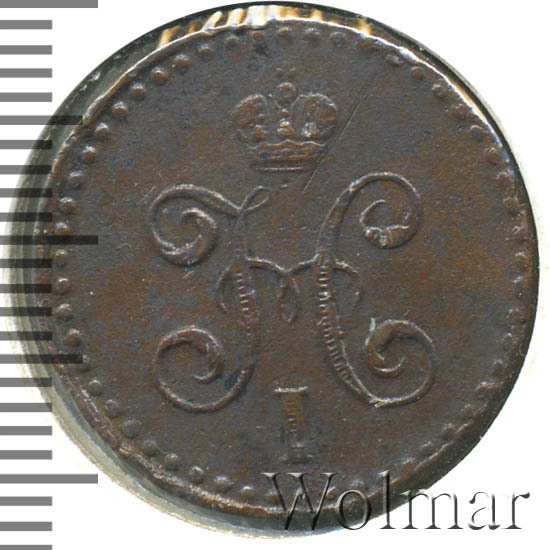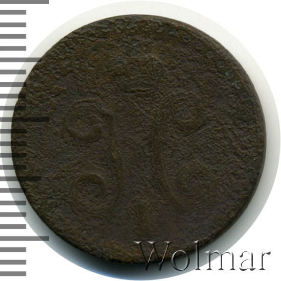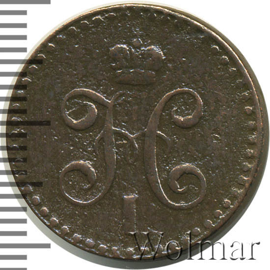 В центре вензель Николая I. Над ним Корона Российской империи. По окружности канта имеются рельефные элементы, выполненные в виде точек.