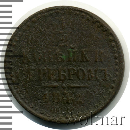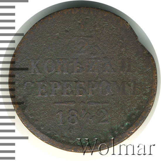 Аверс монеты 1/2 копейки 1842 года СПМ