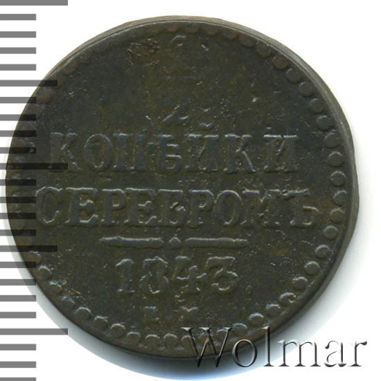 Реверс монеты 1/2 копейки 1843 года ЕМ