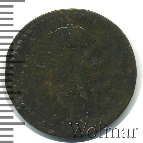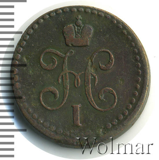 В центре вензель Николая I. Над ним Корона Российской империи. По окружности канта имеются рельефные элементы, выполненные в виде точек.