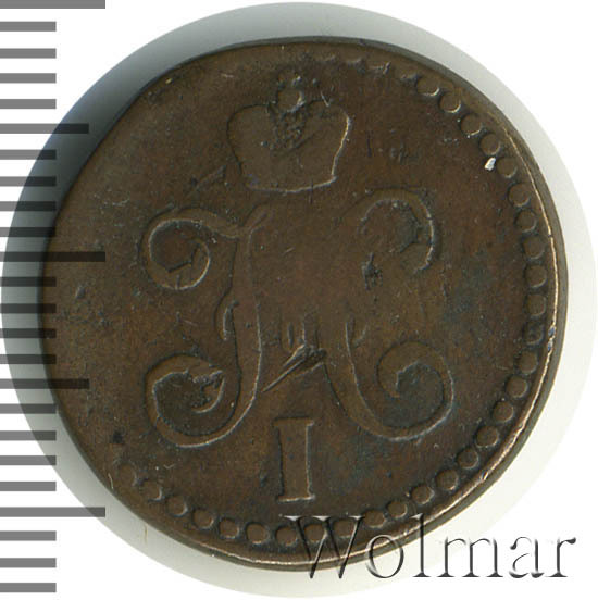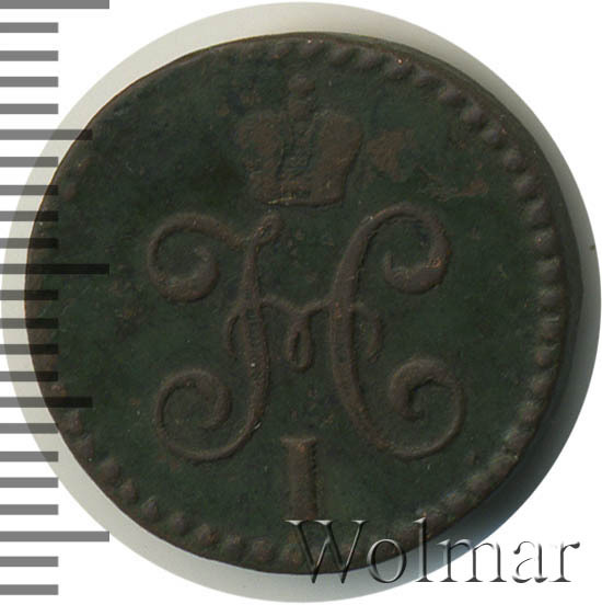 В центре вензель Николая I. Над ним Корона Российской империи. По окружности канта имеются рельефные элементы, выполненные в виде точек.