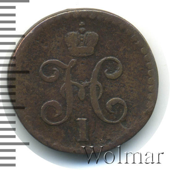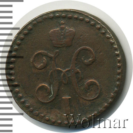 В центре вензель Николая I. Над ним Корона Российской империи. По окружности канта имеются рельефные элементы, выполненные в виде точек.