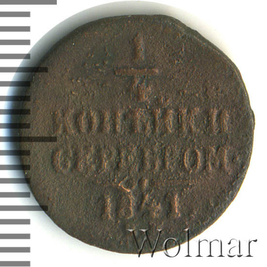 Аверс монеты 1/4 копейки 1841 года ЕМ