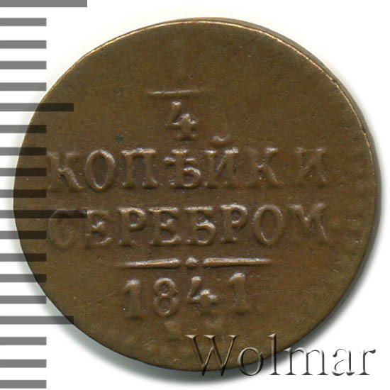 Цена на монету 1/4 копейки 1841 года ЕМ на сегодня, 16 марта 2026 года