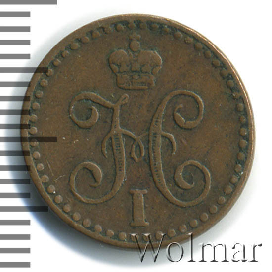 В центре вензель Николая I. Над ним Корона Российской империи. По окружности канта имеются рельефные элементы, выполненные в виде точек