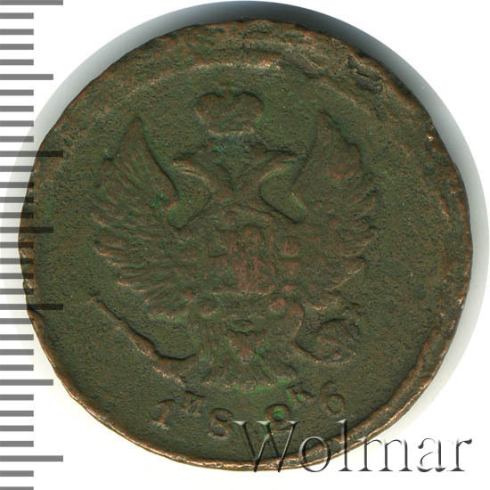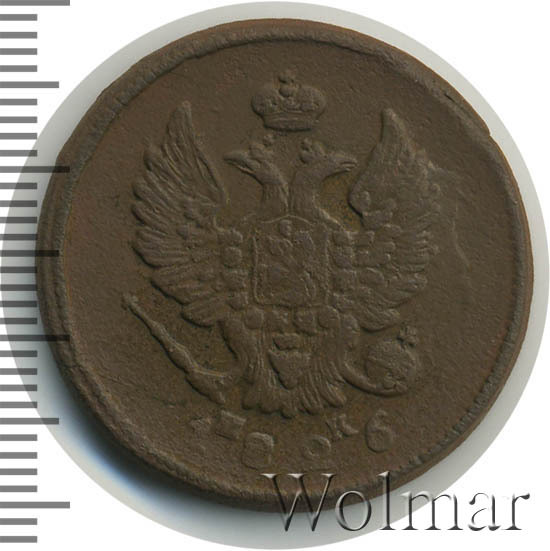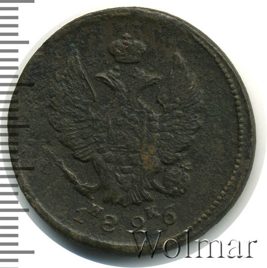Аверс монеты 2 копейки 1826 года ЕМ-ИК