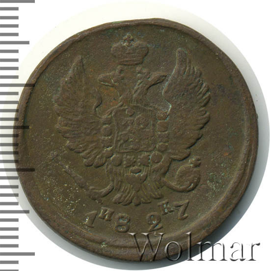 Реверс монеты 2 копейки 1827 года ЕМ-ИК