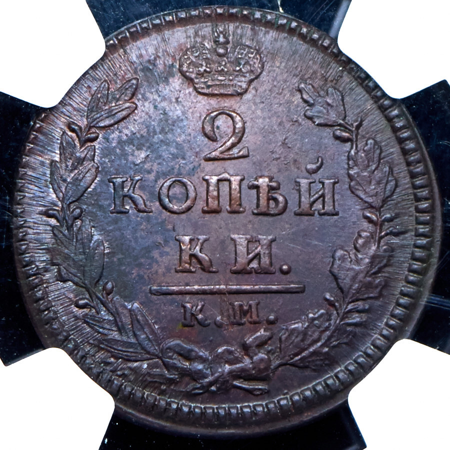 Реверс монеты 2 копейки 1827 года КМ-АМ
