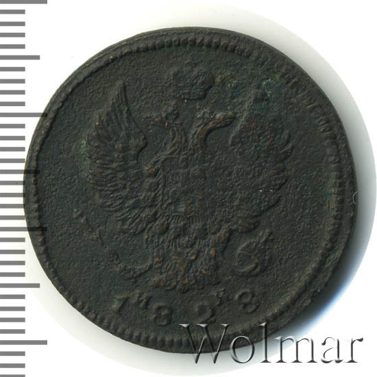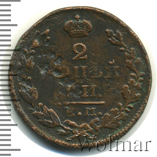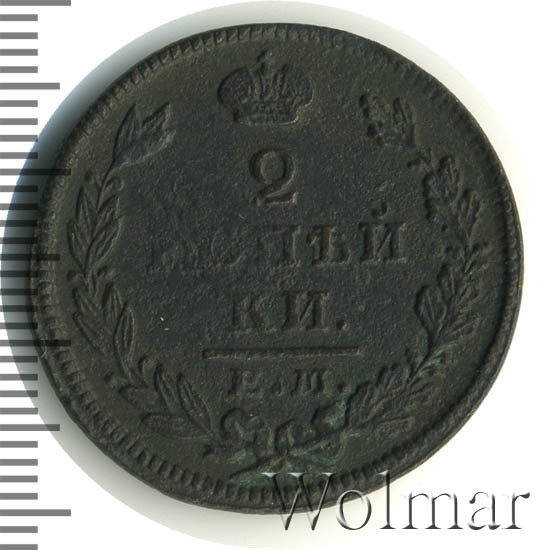 Реверс монеты 2 копейки 1828 года ЕМ-ИК