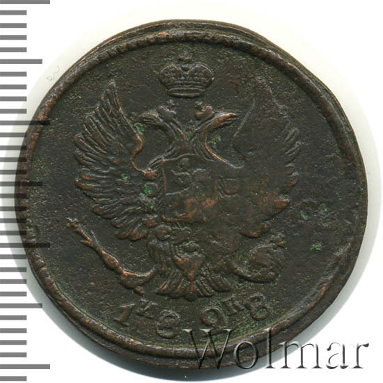 Аверс монеты 2 копейки 1828 года ЕМ-ИК