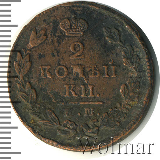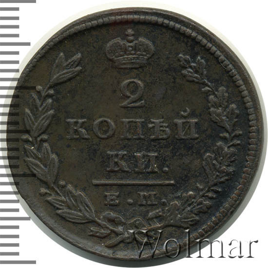 Реверс монеты 2 копейки 1829 года ЕМ-ИК