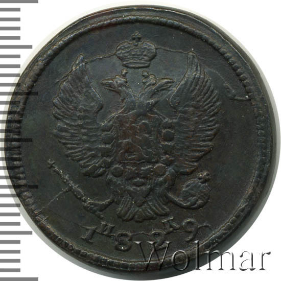 Аверс монеты 2 копейки 1829 года ЕМ-ИК