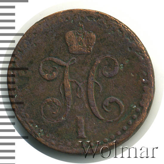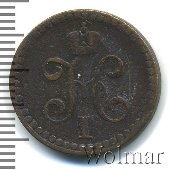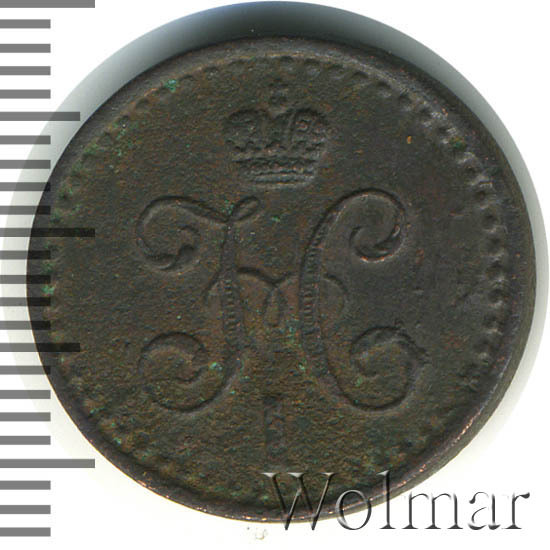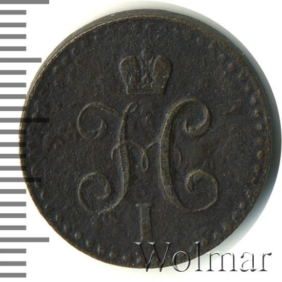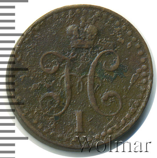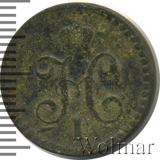 В центре вензель Николая I. Над ним Корона Российской империи. По окружности канта имеются рельефные элементы, выполненные в виде точек.