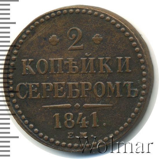Реверс монеты 2 копейки 1841 года ЕМ не украшен
