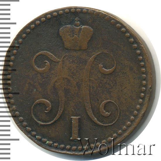 В центре вензель Николая I. Над ним Корона Российской империи. По окружности канта имеются рельефные элементы, выполненные в виде точек.