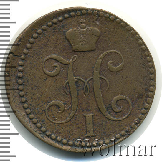 В центре вензель Николая I. Над ним Корона Российской империи. По окружности канта имеются рельефные элементы, выполненные в виде точек.