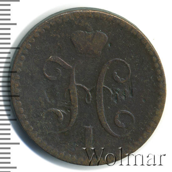В центре вензель Николая I. Над ним Корона Российской империи. По окружности канта имеются рельефные элементы, выполненные в виде точек.