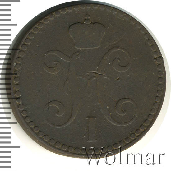 В центре вензель Николая I. Над ним Корона Российской империи. По окружности канта имеются рельефные элементы, выполненные в виде точек.