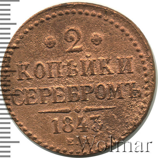Цена на монету 2 копейки 1843 года ЕМ на сегодня, 17 ноября 2025 года