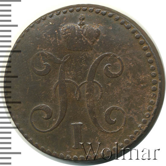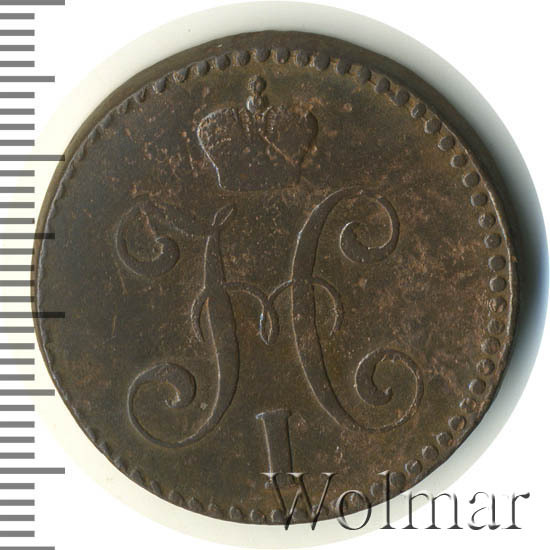 В центре вензель Николая I. Над ним Корона Российской империи. По окружности канта имеются рельефные элементы, выполненные в виде точек.