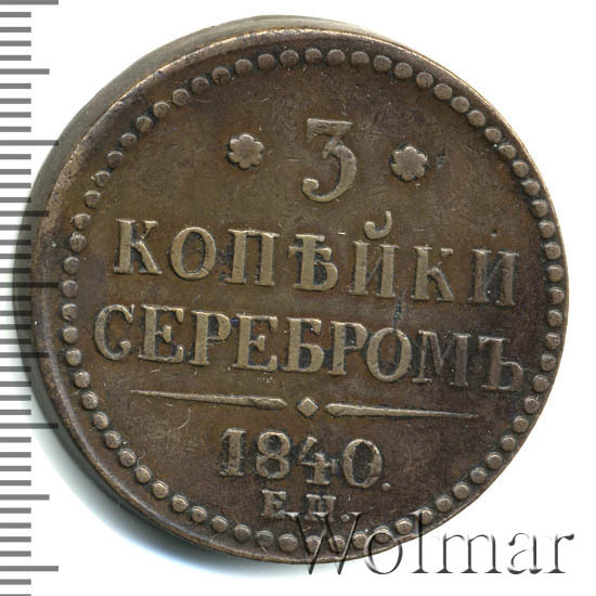 Реверс монеты 3 копейки 1840 года ЕМ украшен, большие