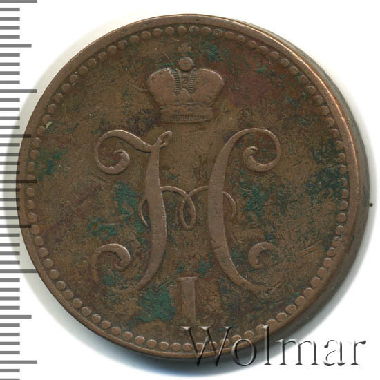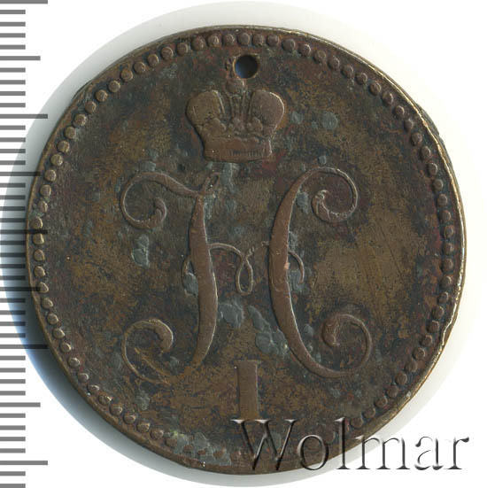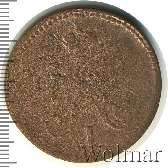 В центре вензель Николая I. Над ним Корона Российской империи. По окружности канта имеются рельефные элементы, выполненные в виде точек.