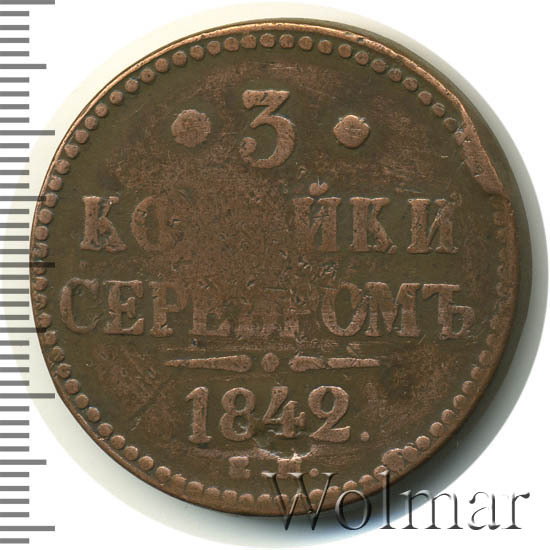 Цена на монету 3 копейки 1842 года ЕМ на сегодня, 25 апреля 2026 года
