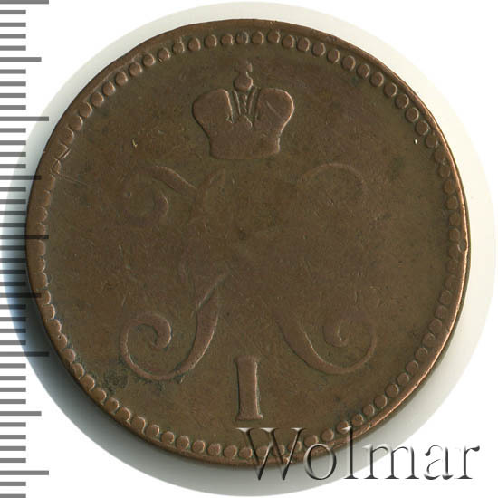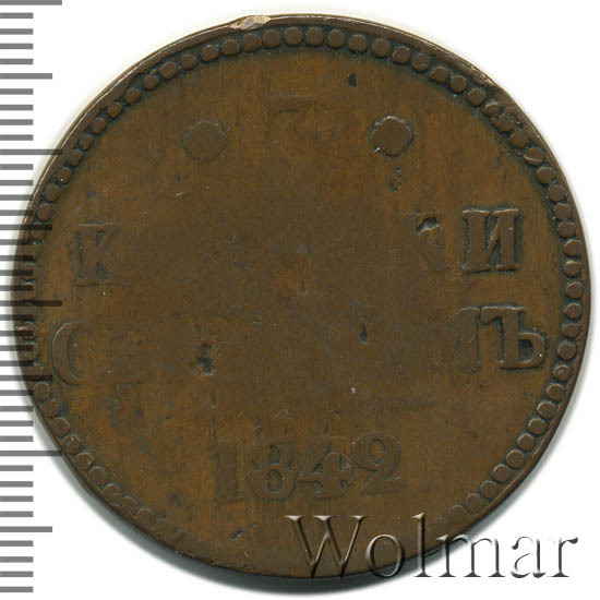 В центре вензель Николая I. Над ним Корона Российской империи. По окружности канта имеются рельефные элементы, выполненные в виде точек.