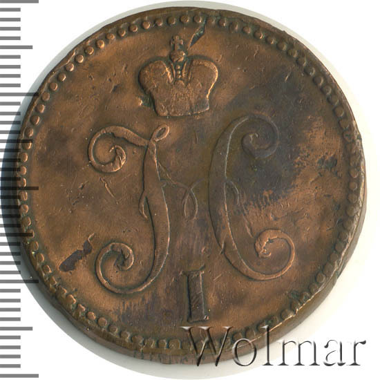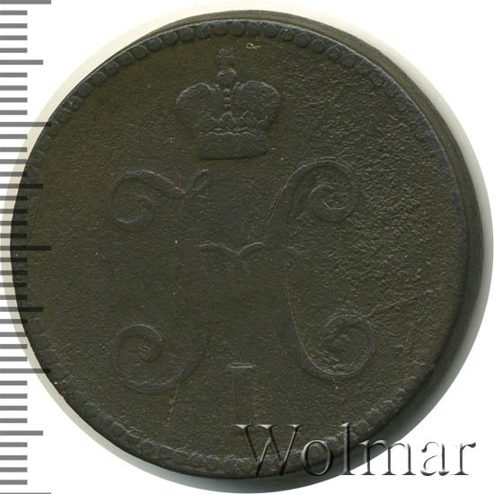 В центре вензель Николая I. Над ним Корона Российской империи. По окружности канта имеются рельефные элементы, выполненные в виде точек.