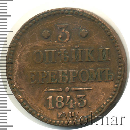 Цена на монету 3 копейки 1843 года ЕМ на сегодня, 29 октября 2025 года